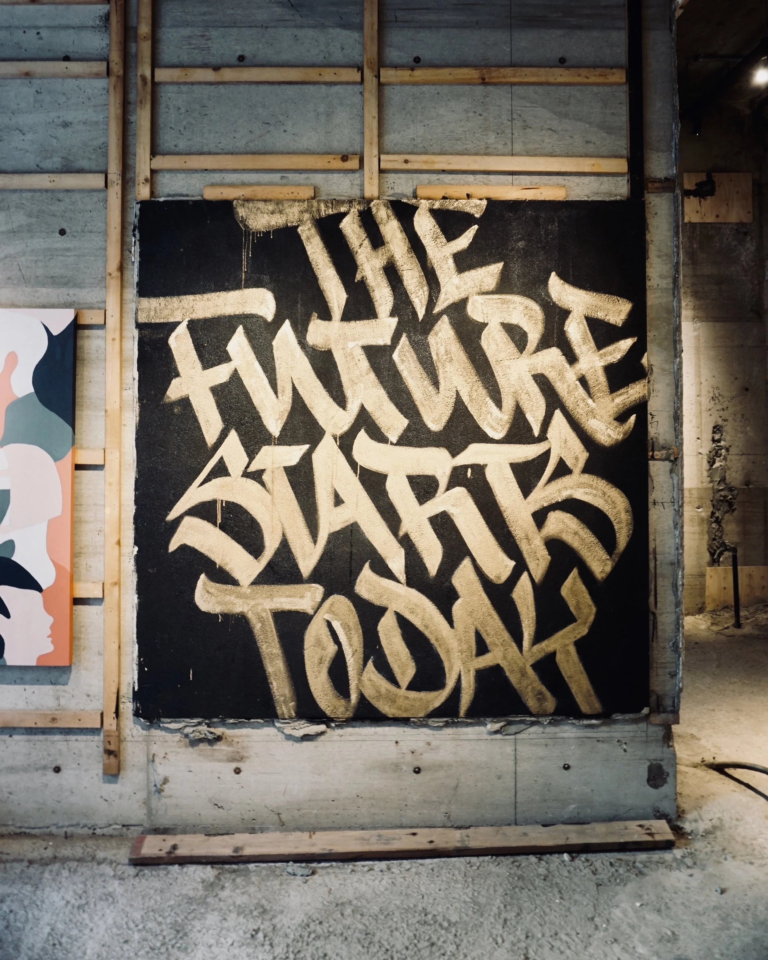 スタッフの方々へ、「未来を作るのは自分自身。どんな未来を作っていく?=How do you create your future」と語りかけるメッセージを描くことで、士気を高めていくアートワークを描いた。