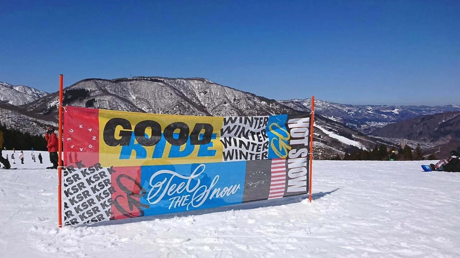 リニューアルオープンした越後湯沢にあるスキー場神立スノーリゾート。そのゲレンデに横幅3mを超えるタペストリーのデザインを制作。雪面に映えるPOPなカラーで、ゲレンデに彩りを加えた。