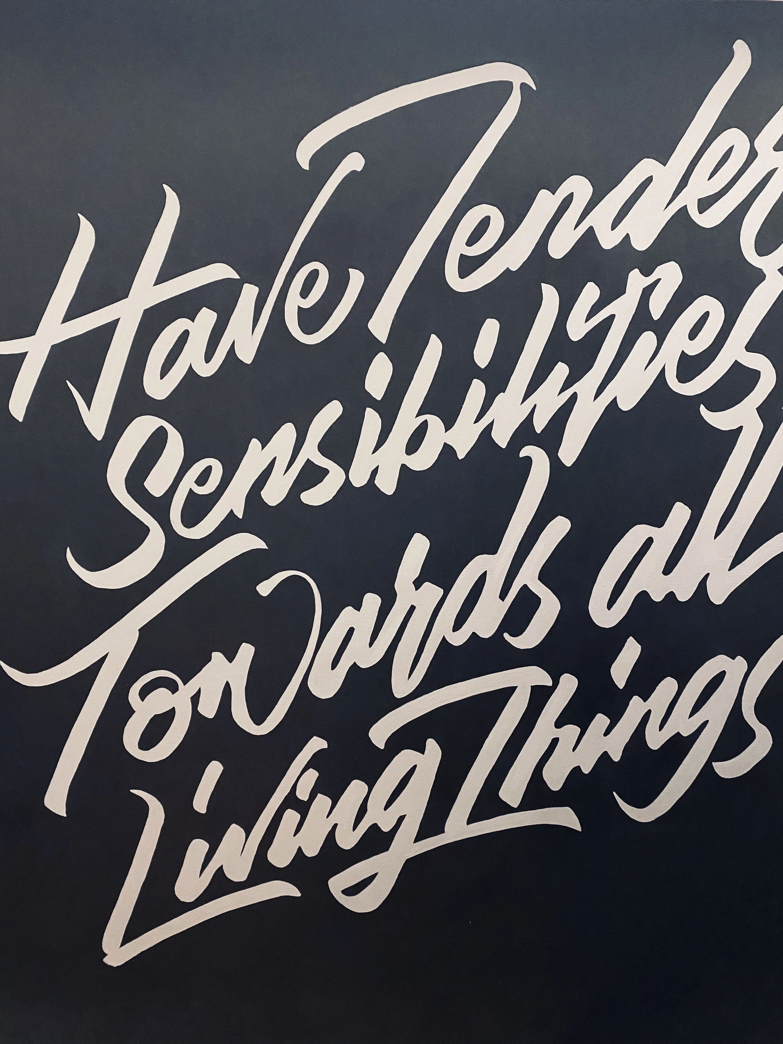 濃紺の壁紙の上からグレーの塗料でメッセージを描いた。